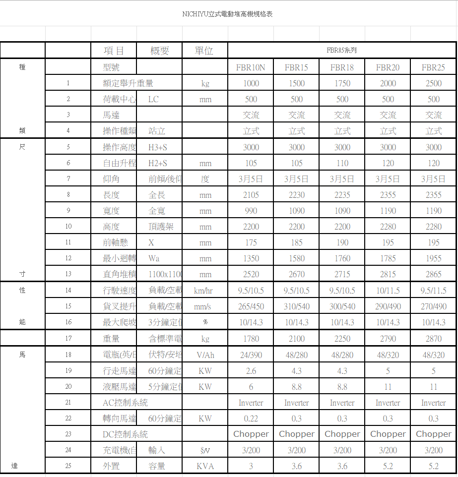 NICHIYU(力至優)立式電動堆高機
