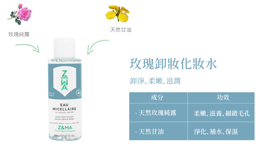 《清潔+保濕=1瓶OK》給肌膚天然的潤澤清潔保濕體驗、極簡天然純萃配方,柔嫩膚觸、淨化緊緻毛孔,使肌膚呈現健康光澤